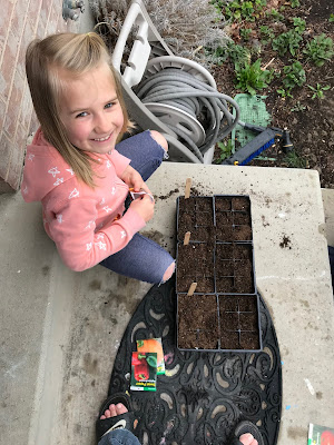 Weather is warmer! That means lots and lots of time outside. Here's Gwen with a chalk drawing of her and her soon to be new cousin Jade. :) We're also having regular picnics outside.